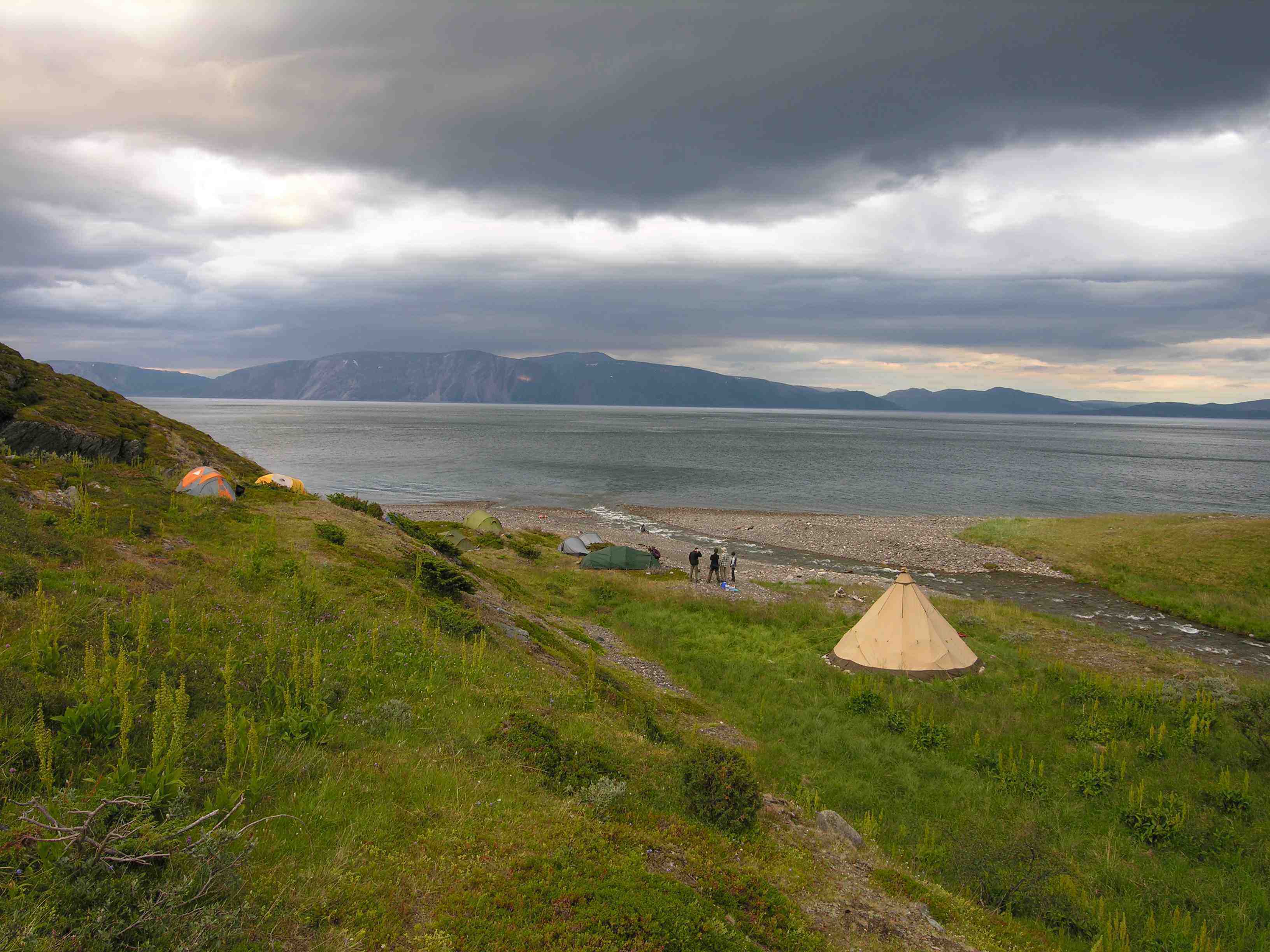 Leirplassen var etablert, åtte telt med stramme barduner lyste mot en utsikt over Tanafjorden og Varangerhalvøya.
