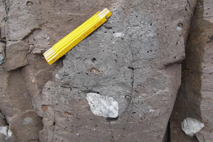 Another example for hiatal surfaces is found within the so called Manndrapselva Member of the Stáhpogieddi Formation. This unit comprises mainly mudstone, siltstone and sandstone. Occasionally, a few up to 5 cm thick conglomerate layers with well-rounded clasts of up to 1 cm in diameter are found (Figure 3). These layers indicate times of erosion, probably related to tectonic processes. The duration of these stratigraphic gaps is still unknown but they are likely of minor (regional) significance, meaning that within the Manndrapselva Member only a few months or years of Digermulen’s geological rock record are missing.