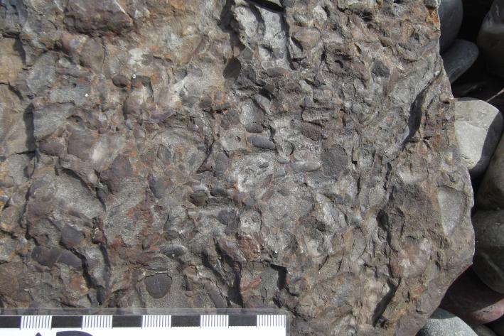 Figure 3. Conglomerate layer within the Manndrapselva Member along the southeast coast of Digermulen Peninsula (Photo Guido Meinhold).