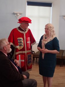 Helje with the dean of the Academy of Sciences (sitting) and the herald of Tallinn (re-enactment) just before the opening of the meeting