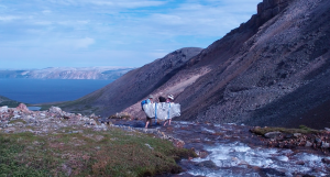 A typical day on Digermulen starts with a cheerful breakfast in our kitchen tent — bacon, fried eggs, porridge and müsli, usually accompanied by tea, coffee or hot chocolate depending on what we feel like. Such high-calorie food guarantees enough energy for a sturdy hike in the morning and a long workday. After breakfast, researchers will discuss the day’s destinations; bad weather can have a large impact on planned work. We then grab something for our individual packs as lunch — including bread, dry tech, cup noodles, fruits, norwegian sausages, hot water and any leftovers from breakfast. We do this because the field localities are not always near our campsite, we do not want to spend lots of time hiking back for lunch.