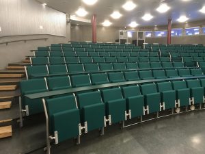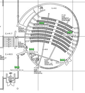 Tabletten (like in “a small, solid piece of medicine”) is an oval, 159-seat auditorium mostly used by the Department of Pharmacy. Wifi service is provided through four omni APs in the amphi shaped room, where ceiling height varies from normal to one-and-a half (a picture taken from the lower, left-hand entrance is included at the end).