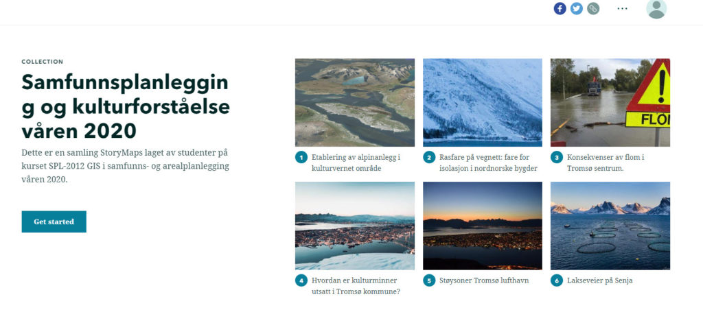 Et av arbeidskravene på kurset var å lage kartfortellinger (StoryMaps) der studentene selv bestemte tema. Gruppearbeidet ledet fram til offentlige kartfortellinger som er tilgjengelige på nett (storymaps.arcgis.com).